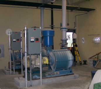 Sewer treatment plant pump room.